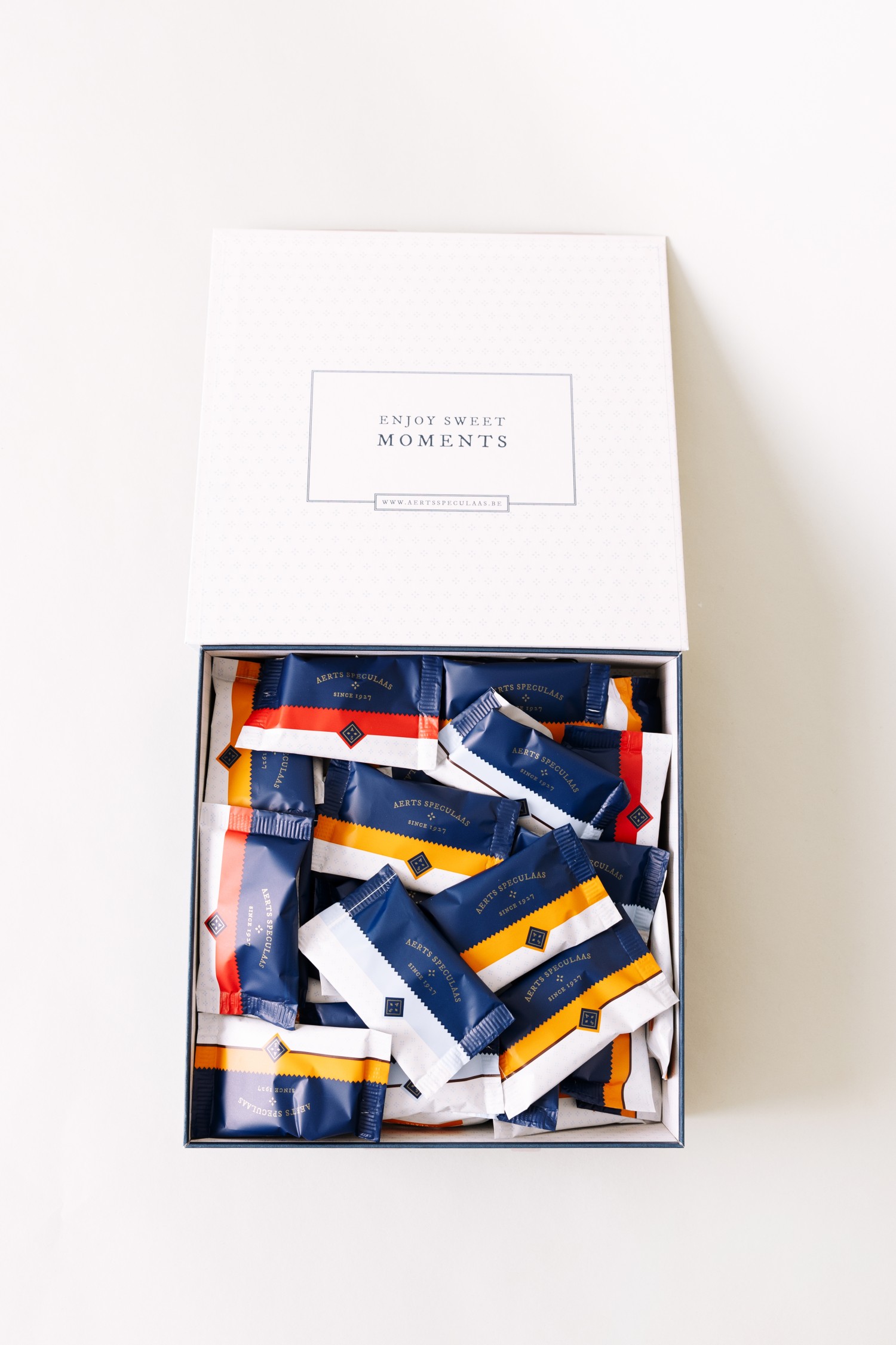 DIspenser (boekdoos) gevuld met 60 individeel verpakte koekjes :